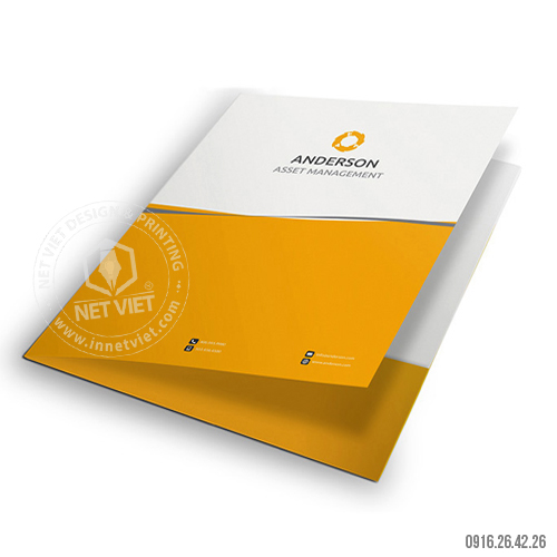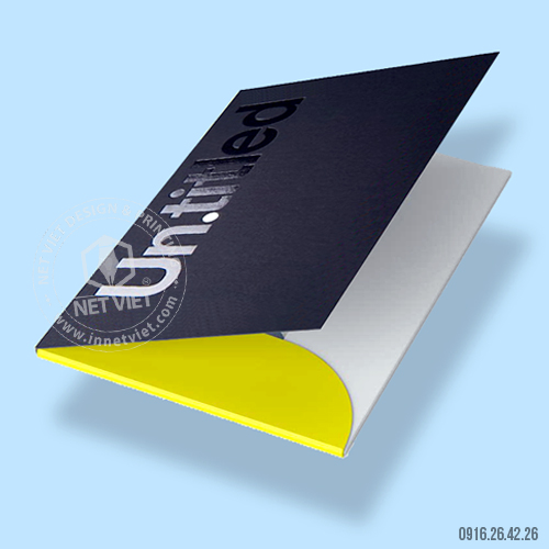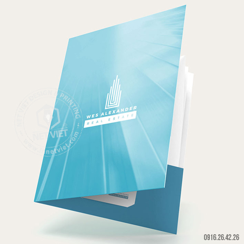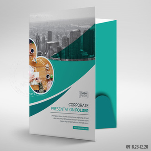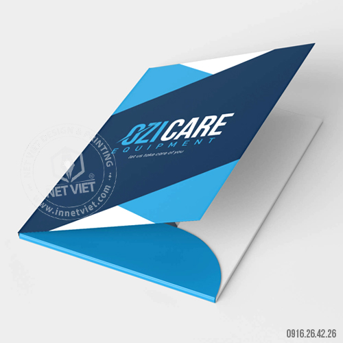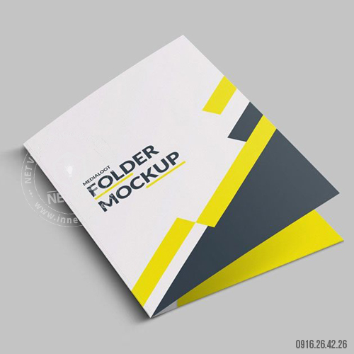 Folder là một cặp đựng tài liệu, được tạo ra bằng cách gấp đôi một tờ giấy cứng lại với nhau, kết hợp giữa khuôn cắt và các đượng gấp khác, tạo thành khe để gắn danh thiếp, cùng với 1 hoặc 2 túi bên trong để chứa tài liệu, văn bản quan trọng. Bề mặt Folder được thiết kế và in ấn nội dung riêng theo yêu cầu. Folder có kích thước khoảng 22 x31 (cm).