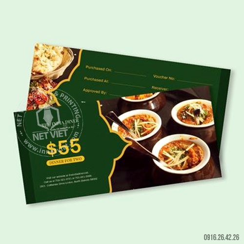 In Nét Việt xin gửi đến quý khách bảng giá in gift voucher, phiếu giảm giá: