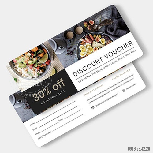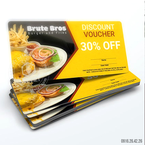 -Được xem như công cụ tiếp thị hiệu quả. Voucher, phiếu giảm giá với nội dung giá trị, thiết kế in ấn chất lượng cao giúp cho thương hiệu đến với nhiều khách hàng tiêm năng hơn.